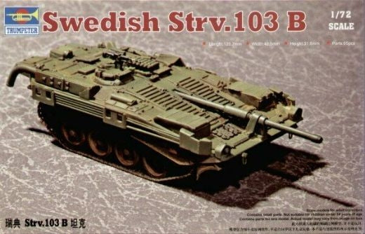 The Stridsvagn 103 or Strv-103 is a modern Swedish Main Battle Tank. The first prototypes of the vehicle were built in 1961, and serial production continued in the years 1966-1971, ending with the production of about 300 vehicles. The basic version of the vehicle was powered by a power unit consisting of a 240hp Rolls-Royce K60 diesel engine and a 740hp Boeing GT502 gas turbine. It was armed with a single 105mm Bofors L / 62 tank gun and three 7.62mm KSP 58 machine guns.