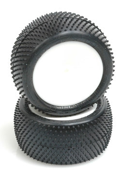 The Mini Pin 2 rear tyre, this is a tyre for high grip astro and carpet racing. The new tyre has a thinner wall thickness which is aimed at providing more traction and improved bump handling. The pins have been designed to have more of a radius edge as opposed to the square edge on the previous and hugely popular Mini Pin tyre. This allows the tyre to work perfectly straight from the packet, without the need for bedding in.