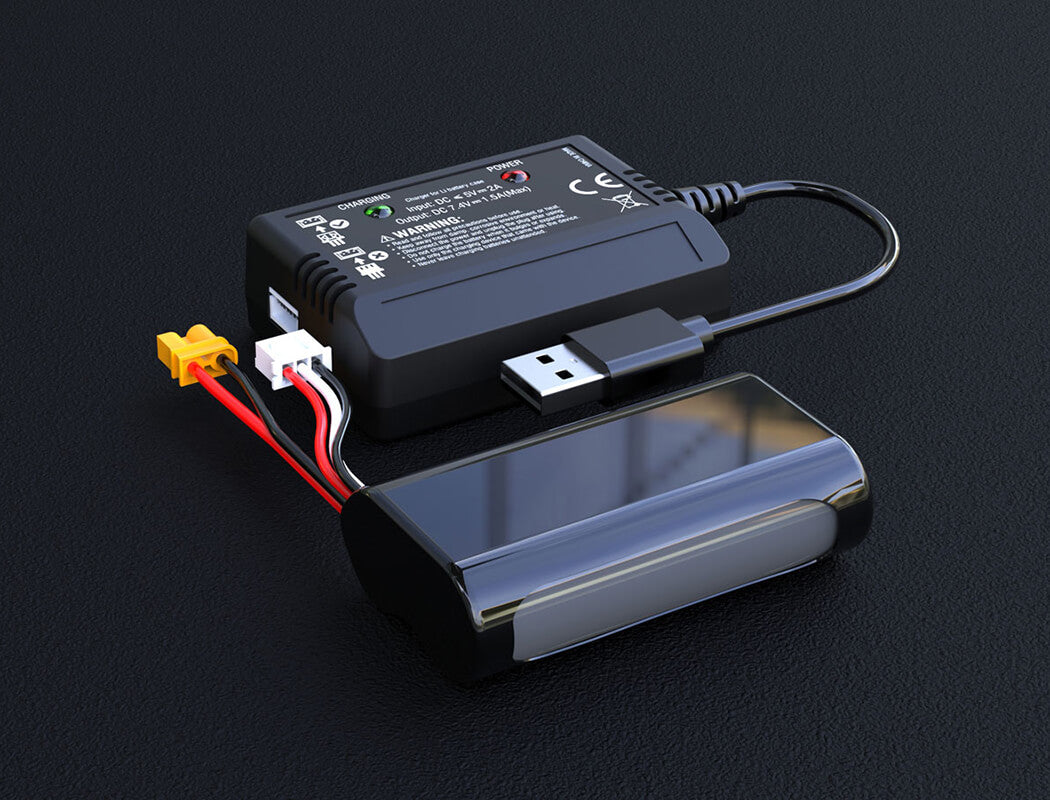 Charger: USB balanced charger, output: 7.4V 1500mA (Max) 2-Cell 7.4V Lithium Battery Balanced Charger