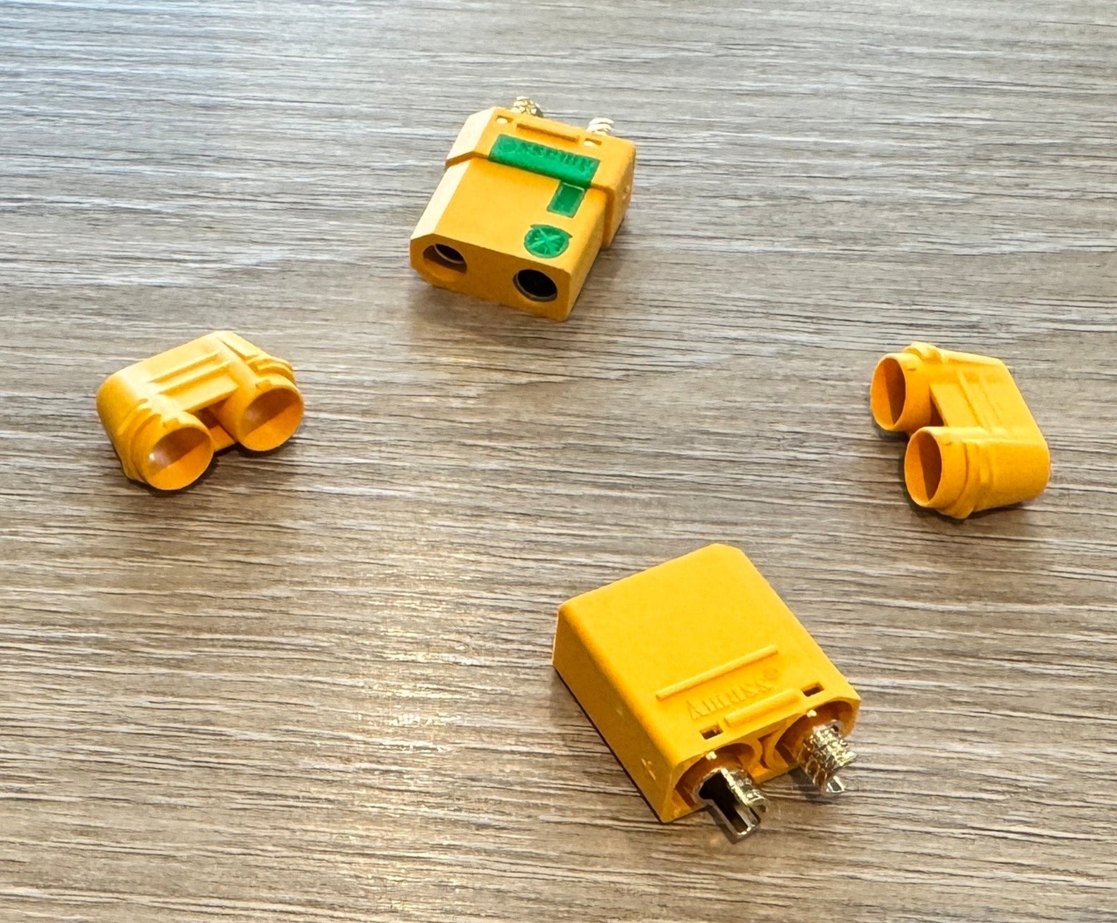 The XT90S Anti-Spark connector is a gold plated shielded connector rated to 90A.